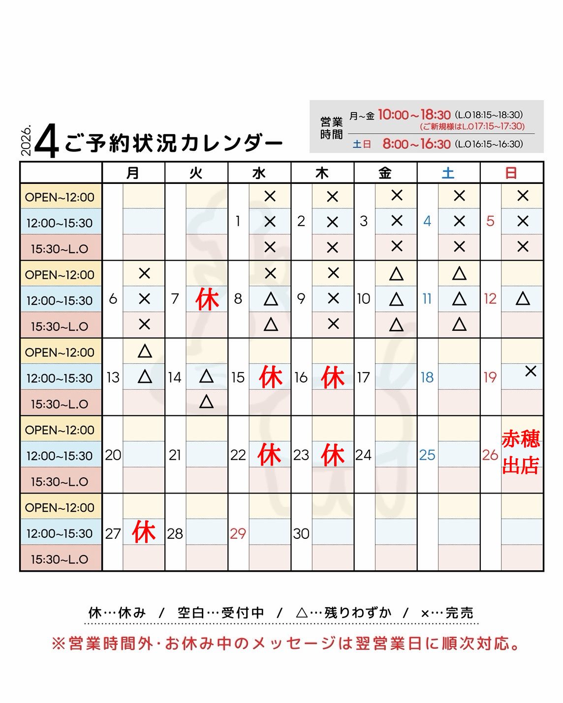 予約分のみ丁寧に